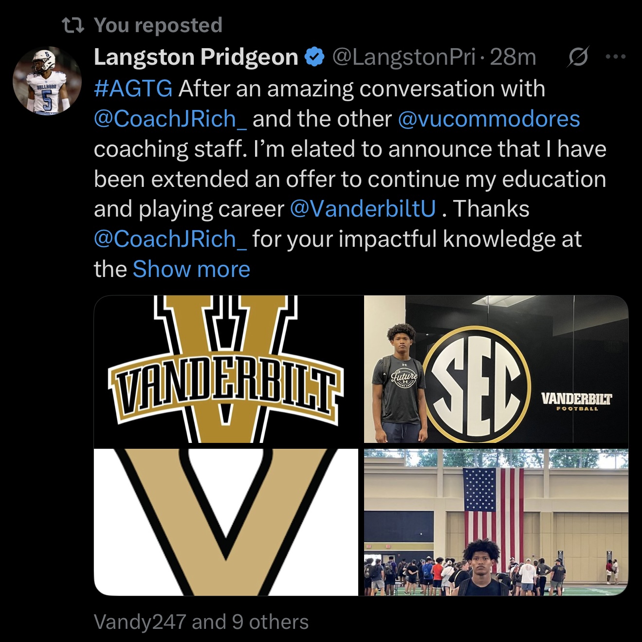 Tis the season for receiving scholarship offers. What a year it's been for Langston.